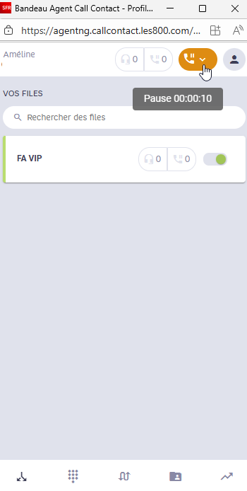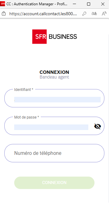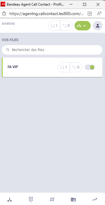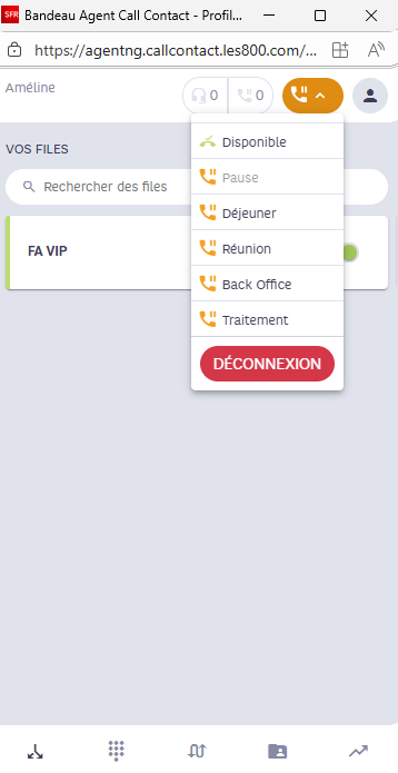 L’adresse, https://agent.callcontact.les800.com/smartccagentpanel?xxxxxxxxxxxxxxxxxxxxxxxx ouvre votre bandeau :