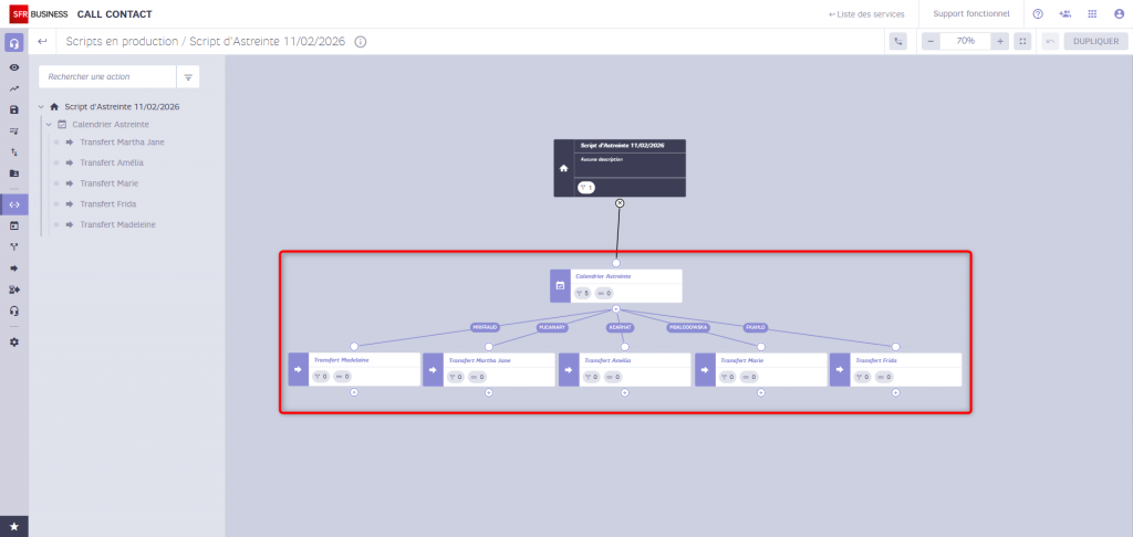 Dans votre script en production, vous devez avoir prévu un transfert « relais » inactif (en orange) non relié à votre calendrier.