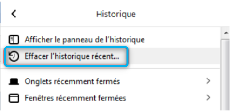 Sélectionner « Effacer l’historique récent »