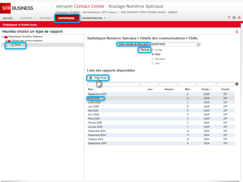 Dans le menu « Statistiques », choisir la catégorie « Ebills ».