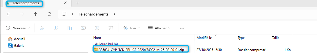 Ouvrir le fichier ZIP téléchargé. À noter : les fichiers Ebills sont au format .csv, compatible avec Excel pour une lecture et une exploitation facilitées.